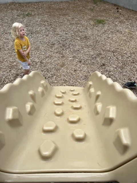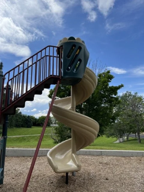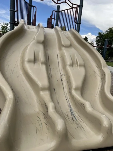 This might be a rock wall but they already have one and there isn’t any normal rock wall stuff and it seems at an angle where it would be a slide so I know that. Almost every park has some kind of bumpy slide but two and this one is taking it way too far.